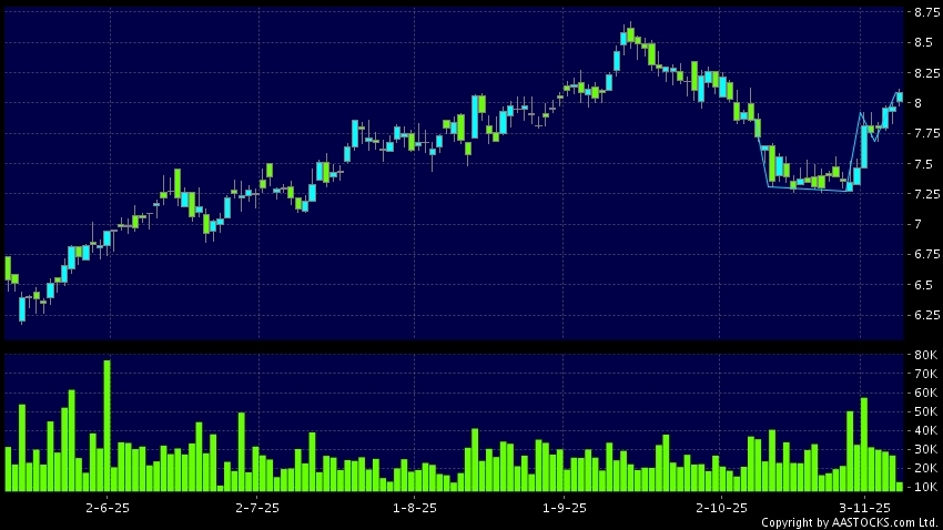 Disclaimer:The information, financial market data, quotes, charts, statistics and / or various technical analysis indicators are automatically generated based on the analyses and interpretations of publicly available information and should be used as references only at your own discretion. Such automatically generated content does not reflect the views or opinions of AASTOCKS.com Limited nor does AASTOCKS.com Limited make any guarantees to their accuracy, completeness, timeliness or correctness. You are advised to consult independent professional advice to verify pricing information or to obtain more detailed market information. Any uses of information or trades executed following the said automatically generated content are taken at your own risk for your own account.
