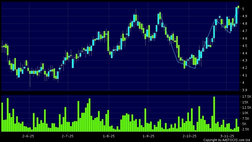 Disclaimer:The information, financial market data, quotes, charts, statistics and / or various technical analysis indicators are automatically generated based on the analyses and interpretations of publicly available information and should be used as references only at your own discretion. Such automatically generated content does not reflect the views or opinions of AASTOCKS.com Limited nor does AASTOCKS.com Limited make any guarantees to their accuracy, completeness, timeliness or correctness. You are advised to consult independent professional advice to verify pricing information or to obtain more detailed market information. Any uses of information or trades executed following the said automatically generated content are taken at your own risk for your own account.