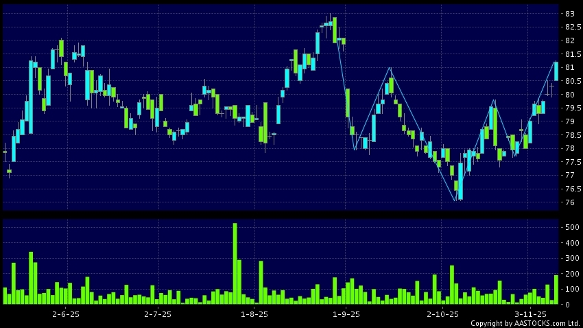 Disclaimer:The information, financial market data, quotes, charts, statistics and / or various technical analysis indicators are automatically generated based on the analyses and interpretations of publicly available information and should be used as references only at your own discretion. Such automatically generated content does not reflect the views or opinions of AASTOCKS.com Limited nor does AASTOCKS.com Limited make any guarantees to their accuracy, completeness, timeliness or correctness. You are advised to consult independent professional advice to verify pricing information or to obtain more detailed market information. Any uses of information or trades executed following the said automatically generated content are taken at your own risk for your own account.