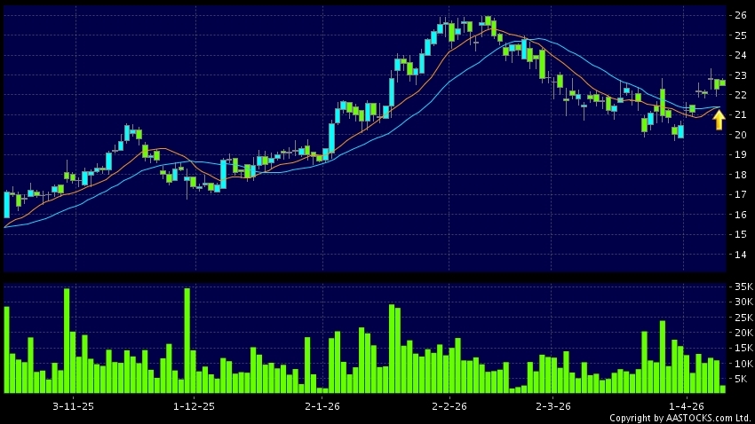 黃金交叉是一個利好訊號,指股價的短期移動平均線升穿長期移動平均線,例如50天線升穿250天線,在圖表上構成交叉的形狀。股價通常會上升形成一個上升趨勢,技術走勢向好。(港股報價延遲最少十五分鐘。沽空資料截至 2026-04-16 16:25。)